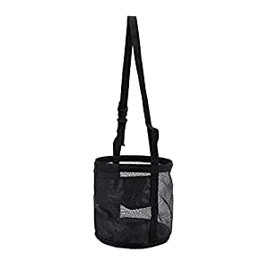 This feed bag highlights durability with the materials use to make it. It is created from durable nylon mesh, empowered with adjustable strap and buckle. This strap allows you to adjust it to fit the height of a saddle horse to mule. It is of great use for separate feeding, to help messy-eating horse or when you are travelling with them.