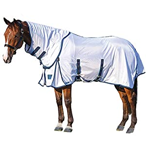 The Hy Protect Full Neck Fly Rug does everything you need form a fly rug. It keeps flies away, it helps keep your horse consistently cool, and it is very durable. If the right size is obtained, it fits well over the horse, and you can use the straps to secure it in place. The grey and coral colors make sure that it reflects heat away, keeping your horse cool.