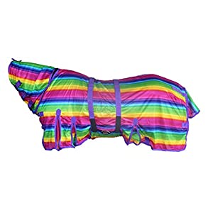 This fly sheet has everything you could ever need, the most important of which is the pattern. Horses are a lot like zebras, and this sheet comes with a zebra print which makes your horse look less domesticated.