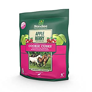 The Equus Magnificus German Horse Muffins in Ziploc pouch is an all-natural horse feed. Its ingredients include oats, corn, soybean oil, beet pulp, wheat flour, molasses products, bran, and other vitamin supplements. The Equus horse feed is soft and moist. If you have a horse that does not like peppermints and dry horse cookies, try this out. Picky horses usually fall in love with this treat- according to customer reviews. This product has lots of comments from customers to be the best feed for their horses.