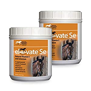 Elevate Se vitamin and mineral supplement for horses is one-part natural vitamin E and one-part organic selenium yeast. This proprietary blend of ingredients was made for horses who lack both selenium and vitamin E. It is perfect for breeding horses, performance horses, and ponies.