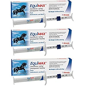 The Equimax worming paste is a powerful instant horse wormer capable of providing nearly instant relief form worm infections. This paste is effective against roundworms and tapeworms. Each dose comes with about 6.42 grams of paste. This paste-based wormer offers nearly instantaneous relief for most horses and eliminates bots.