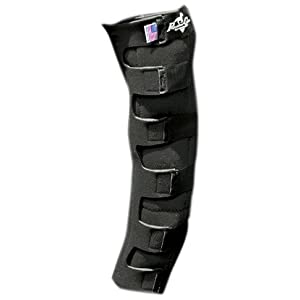 The Equine Nine Pocket Ice Boots made by Professional’s Choice is another excellent choice for ice treatment therapy; it is a versatile boot that measures up to 23 inches in height. This boot provided ice therapy for my horse from above the knee down to the pastern.