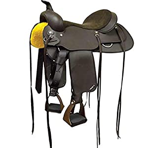 With this saddle, you’re a hat and a pair of boots away from being a classic cowboy. It is made of genuine 100% cowhide leather and it comes in a single color: dark oil. The saddle has a padded seat and its tree is made of fiberglass, making it strong and sturdy.